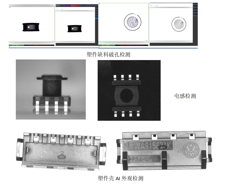 1.外觀檢測:檢測產(chǎn)品表面裂痕、劃傷、缺口,檢測連接器參數(shù),計算連接器的端子間距、平整度,檢測缺陷等